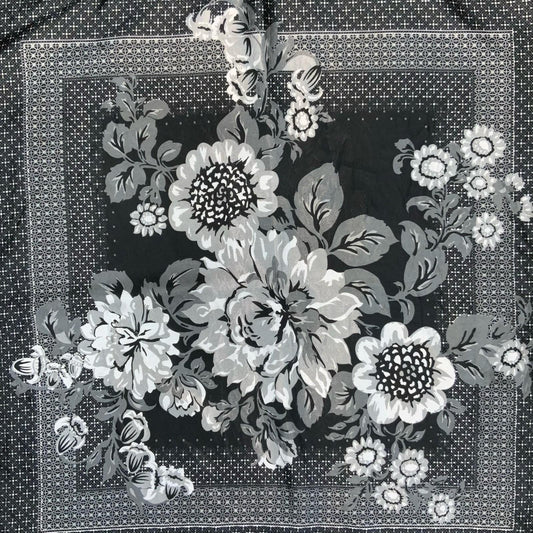 VTG BLACK GREY WHITE FLORAL PATTERNED ELEGANT SQUARE SCARF